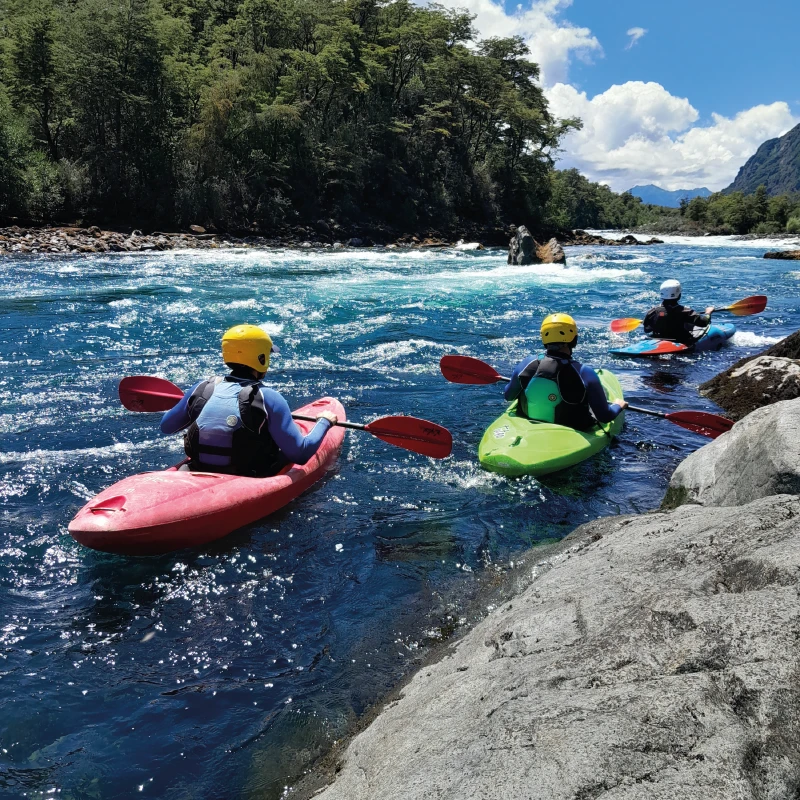 Join a memorable full day river kayaking adventure on the Petrohue River, one of the most scenic waterways in southern Chile. From the very first strokes, you discover calm sections, vibrant currents, and the unique atmosphere of the Patagonian Andes. This experience is perfect for beginners and outdoor lovers who want to explore a river environment in a safe, fun, and guided setting.