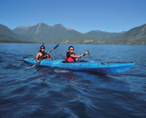 Starting at the Puerto Rico sector, we paddle approximately 4 kilometers to the Salto del Calzoncillo waterfall. Depending on the wind, the route can be adjusted to ensure safety. This impressive 400-meter waterfall is among the tallest in South America. The Sea Kayaking Chile route continues with about 10 kilometers of peaceful paddling through blue waters, silently observing the surrounding flora, including olivillos, Chilean myrtles, and giant ferns. Birdwatchers can spot native species such as kingfishers, quetro ducks, red-gartered coots, and cormorants. In addition, the calm waters allow for reflection and connection with nature.